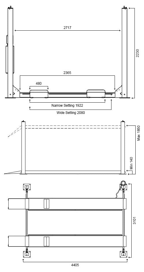 • Clearance between posts – 2715mm